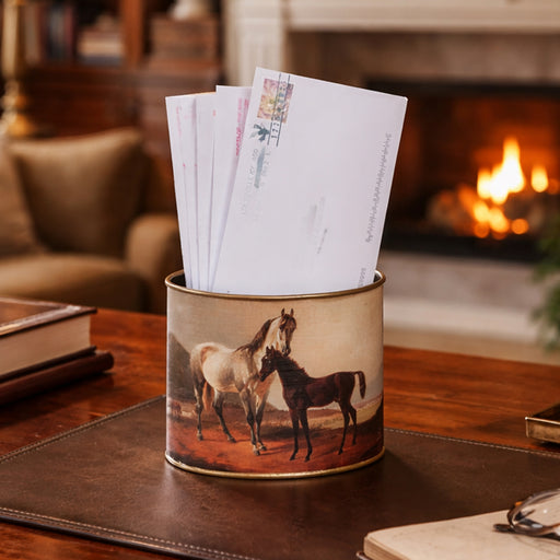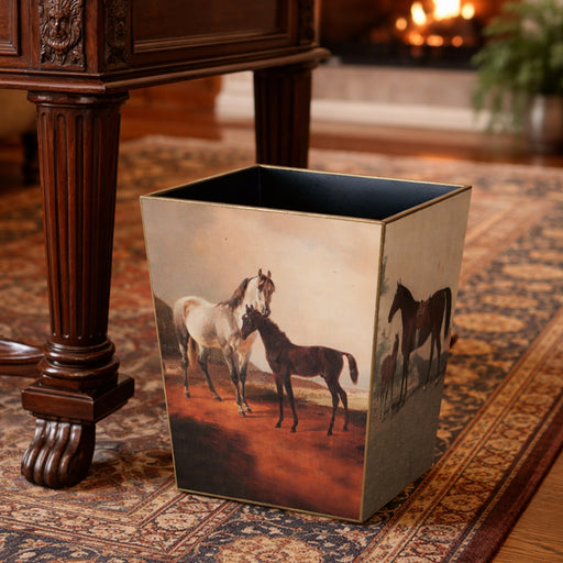 Original price $145.00 - Original price $145.00Original price$145.00$145.00 - $145.00Current price $145.00This beautiful equestrian wastebasket features vintage 19th-century mare and foal art. Two different images circle the basket: a grey mare with dar...