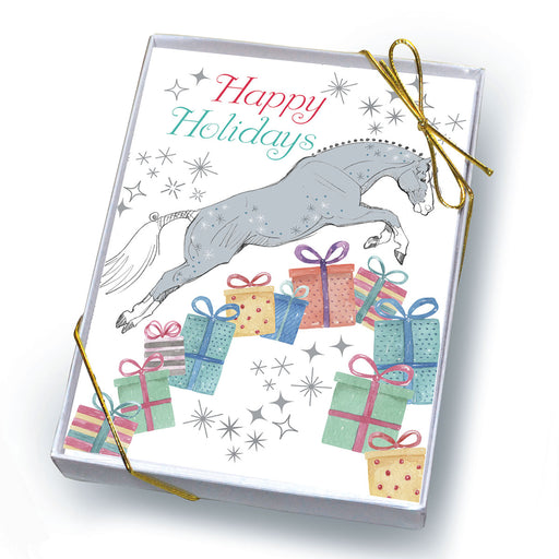 Original price $16.99 - Original price $16.99Original price$16.99$16.99 - $16.99Current price $16.99Joyful equestrian themed holiday cards featuring a beautiful dappled grey horse jumping high over wrapped Christmas packages! The inside of the car...