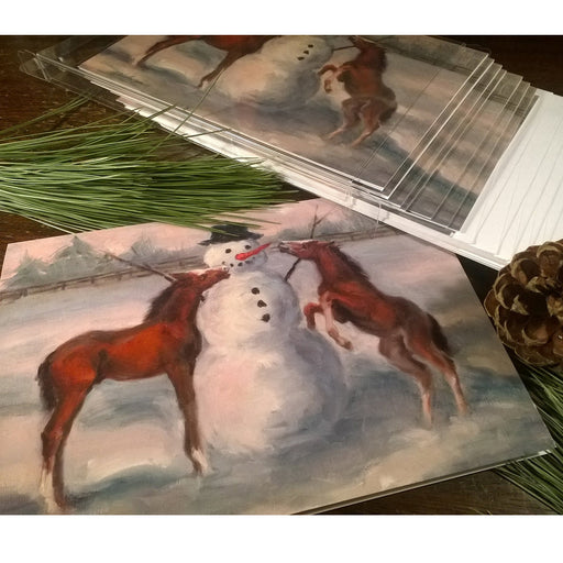 Original price $21.95 - Original price $21.95Original price$21.95$21.95 - $21.95Current price $21.95Delightful holiday horse card from the studio of Celeste Susany, world renowned sporting artist. Two bay foals frolic in the snow-covered pasture j...
