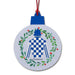 The perfect ornament for the horseracing loving home! Large ornament features Secretariat’s famous blue and white checkered racing silks surrounded by green wreath border. The perfect tribute to the greatest racehorse of the 20th century! A fun ornament for your Thoroughbred racehorse loving friends! Made in the USA.
