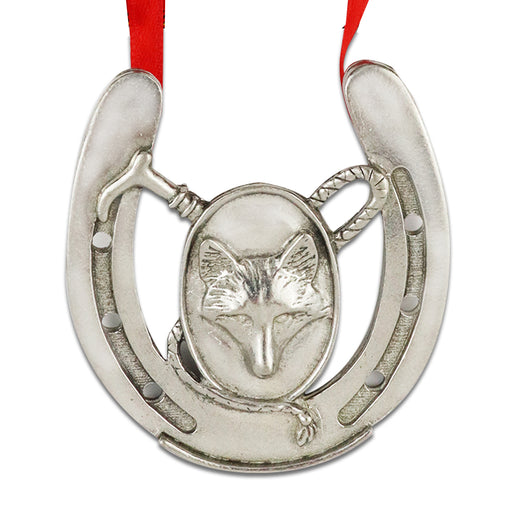 Fox Mask & Whip in Horseshoe Pewter Ornament