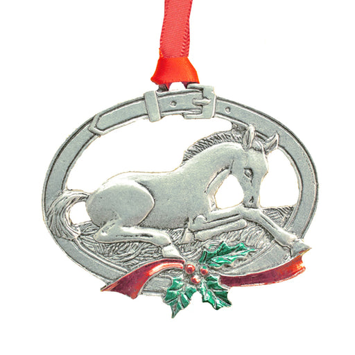 Original price $0.00 - Original price $0.00Original price $0.00$26.95$26.95 - $26.95Current price $26.95Brilliant jumping horse for the equestrian Christmas tree. Featuring a pewter ornament with red enameled horse covered with frosted snowflakes. A w...