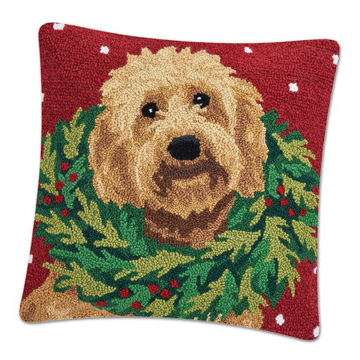 Original price $84.00 - Original price $84.00Original price$84.00$84.00 - $84.00Current price $84.00This adorable dog Christmas themed pillow features a doodle wearing a Christmas wreath against a deep red background sprinkled with snowflakes. A d...