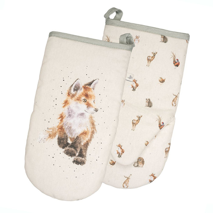 Fox themed oven mitt is a wonderful addition to any kitchen, this charming single oven glove features fox art by British artist Hannah Dale of Wrendale Designs. The front has a charming large red fox, back is an all over pattern of foxes and other wildlife creatures. Contrasting piped edging and a handy loop for hanging mean these gloves are both stylish and practical. Outer 100% cotton. Inner lining 100% cotton. Inner filling 100% polyester. 12 x 6.5 x 1 inches. Machine washable. A welcome gift for any Fox lover.