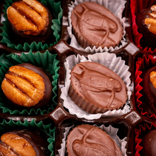 Original price $42.95 - Original price $42.95Original price$42.95$42.95 - $42.95Current price $42.95A yummy collection of Derby Chocolates includes 6 Dark Chocolate Mint Juleps (green cup), 3 Solid Milk Chocolate Molded Horse Heads (white cup), an...