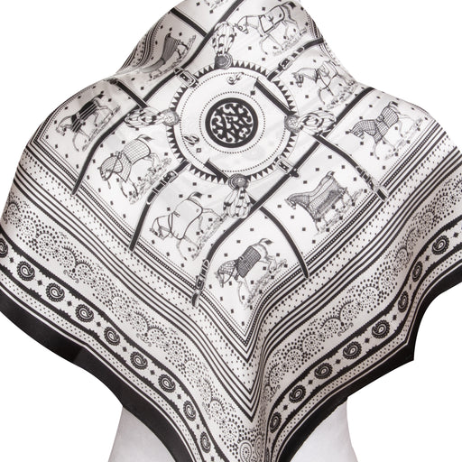 Equestrian Park Silk Neck Scarf - Black & White - 20"x20"