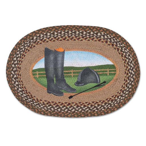Original price $43.95 - Original price $43.95Original price$43.95$43.95 - $43.95Current price $43.95Braided equestrian theme rug, featuring a tall pair of black riding boots, helmet and crop against a green fields. Bordered with rich browns and hu...